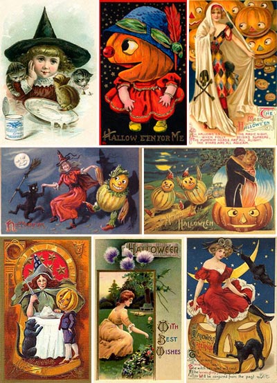 Винтажные викторианской эпохи открытки и картинки в теме Halloween'а